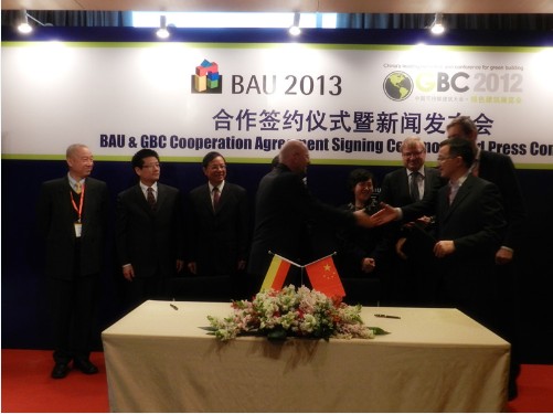 2012年3月26日,VNU亞洲展覽集團(tuán)-上海萬耀企龍展覽有限公司與德國慕尼黑展覽集團(tuán)MMG全資子公司慕尼黑展覽(上海)有限公司在證大喜馬拉雅中心正式簽訂合作協(xié)議。自2012年起,慕尼黑展覽公司將全面助力中國可持續(xù)建筑大會綠色建筑展覽會(Green Building China-GBC)。德國慕尼黑展覽公司主辦的BAU是全球最重要的國際建筑和建設(shè)行業(yè)展覽會。2011年剛結(jié)束的活動吸引了超過2,000家企業(yè)參與,展示一流的建筑產(chǎn)品與服務(wù),吸引近240,000專業(yè)觀眾參觀。