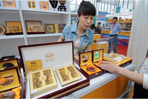 一家來(lái)自西藏的參展商展出蟲(chóng)草制品(5月10日攝)。5月10日,由商務(wù)部和江蘇省人民政府聯(lián)合主辦的第七屆跨國(guó)零售集團(tuán)采購(gòu)會(huì)在南京開(kāi)幕,近2000家采購(gòu)商及供應(yīng)商參加了采購(gòu)會(huì)。本屆采購(gòu)會(huì)吸引了沃爾瑪、家樂(lè)福、大潤(rùn)發(fā)等近20家跨國(guó)零售集團(tuán)以及國(guó)內(nèi)大型商貿(mào)流通企業(yè)和國(guó)際采購(gòu)商。