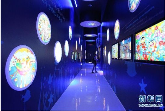 長(zhǎng)廊兩邊的畫作都是中國(guó)孩子的作品