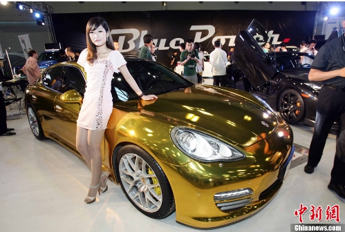 5月17日至20日“2012中國太原國際汽車展覽會”在山西太原會展中心召開,來自世界各地汽車廠商紛紛匯集于此。其中不乏世界著名品牌如阿斯頓馬丁、保時捷、奔馳、寶馬等。“黃金版”保時捷以其新穎的外觀,吸引了大量市民。(來源:中新網(wǎng))