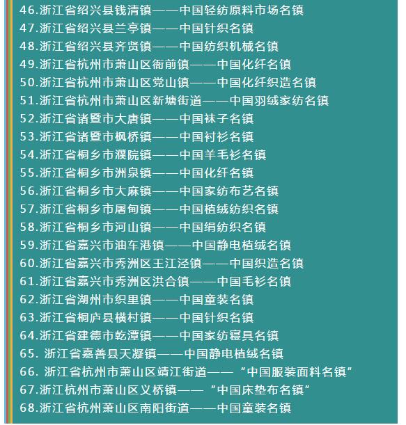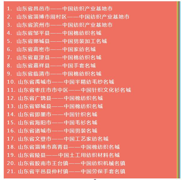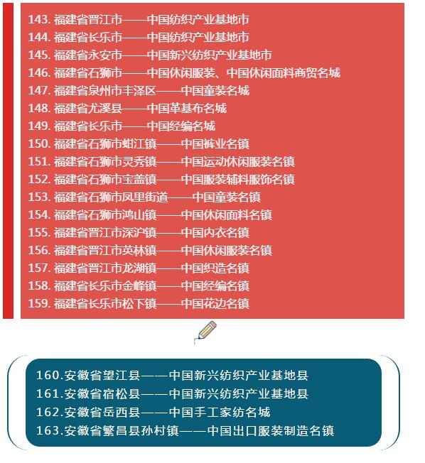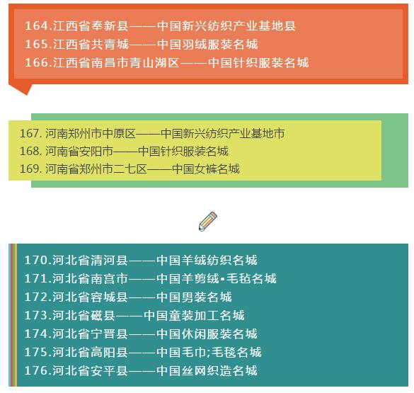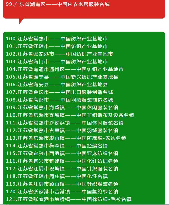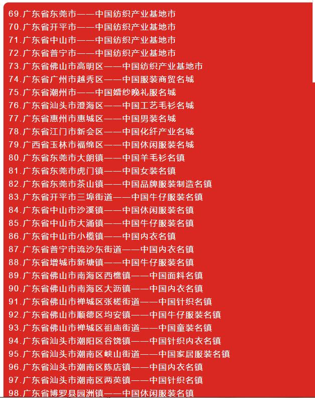 全國各省紡織服裝產(chǎn)業(yè)集群地區(qū)名單