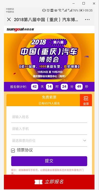 重慶車博會(huì)提前賀國(guó)慶 限量門票免費(fèi)開搶