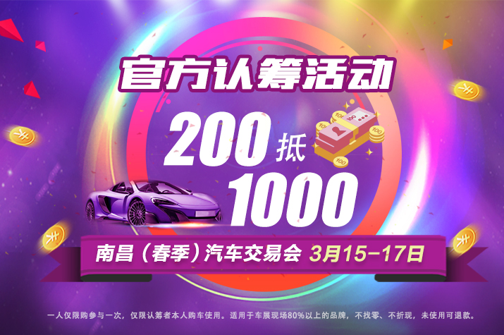 ①參與認(rèn)籌:觀眾至車展現(xiàn)場(chǎng)認(rèn)籌處交納200元認(rèn)籌款并登記,得到一張1000元購(gòu)車抵扣券。(每人最多認(rèn)籌兩張)
