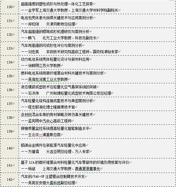 針對汽車輕量化新產品、新技術,將組織10項新專題發(fā)布會。