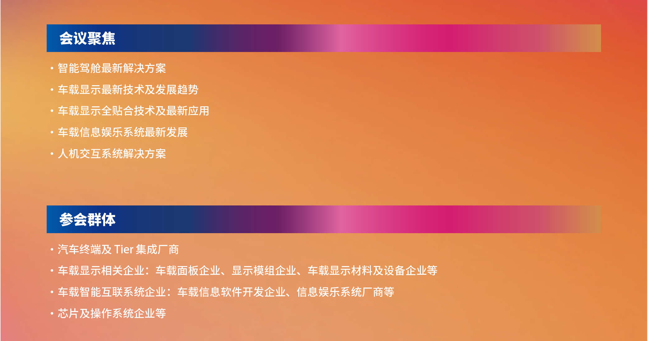 導(dǎo)語:2019年6月27日,勵擴(kuò)展覽和NE時代將合作舉辦“2019智能座艙暨車載顯示與智能交互技術(shù)大會”系列活動將在2019國際新型顯示技術(shù)展現(xiàn)場隆重舉辦。本次系列活動立足于智能座艙高速發(fā)展的風(fēng)口,圍繞智能表面技術(shù)、車載顯示、智能交互等熱點話題,與廣大同仁共同探討業(yè)內(nèi)最新技術(shù)發(fā)展趨勢,探索行業(yè)發(fā)展未來。