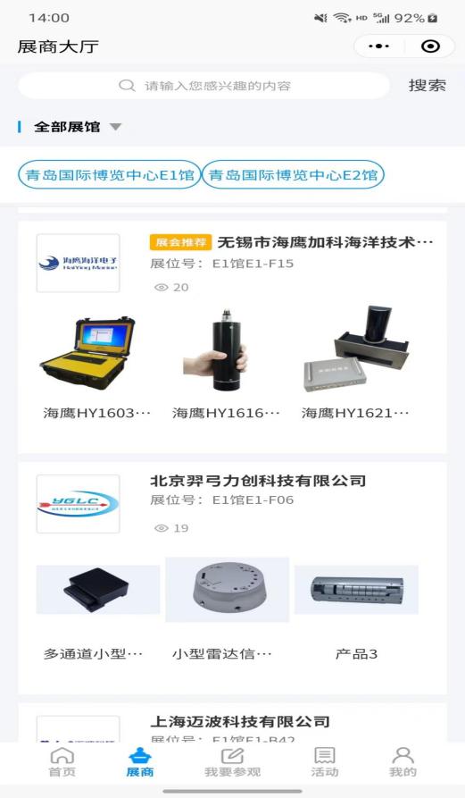您可以通過展商秀平臺提前預(yù)覽2023(第八屆)青島國際海洋科技展覽會參展商、展品、主題論壇、同期活動等展會相關(guān)內(nèi)容,實(shí)時(shí)掌握青島海科展咨詢、預(yù)約洽談,報(bào)名參會!