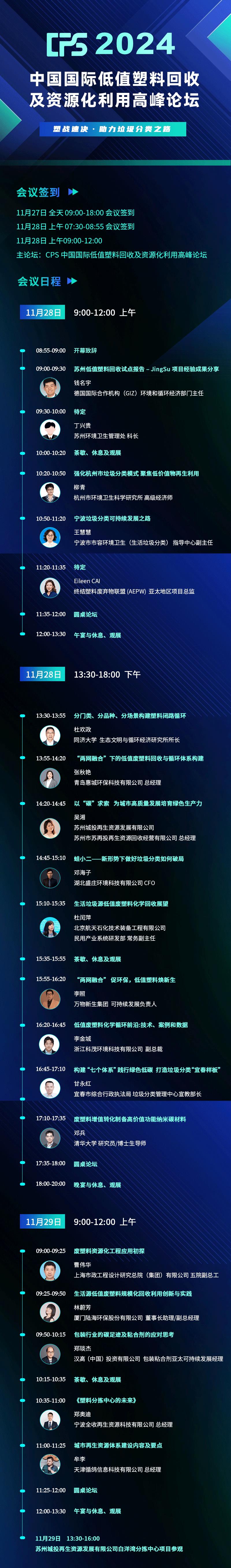 會議日程搶先看 | CPS 2024 中國國際低值塑料回收及資源化利用高峰論壇,11月28日-29日與您相約蘇州!